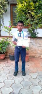 1. Siddharth. S of IV B won 2nd prize with trophy.